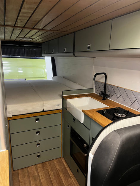 Roadie is an XLWB VW Crafter, all the way from Switzerland. It is a conversion done by myself after the owners previous conversion was showing signs of age. It now roams the wilds of Canada after being shipped over, for a lifetime of adventure. It is a 5 berth, with 5 belted seats. Housing a pop-top, and space for 3 children. It has a fairly modern, functional style to it, for a long lasting finish.